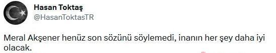 İYİ Parti Genel Yönetim Konseyi Üyesi Hasan Toktaş, “Meral Akşener şimdi son kelamını söylemedi” diyerek “İnanın her şey daha âlâ olacak.” tabirlerini kullandı.