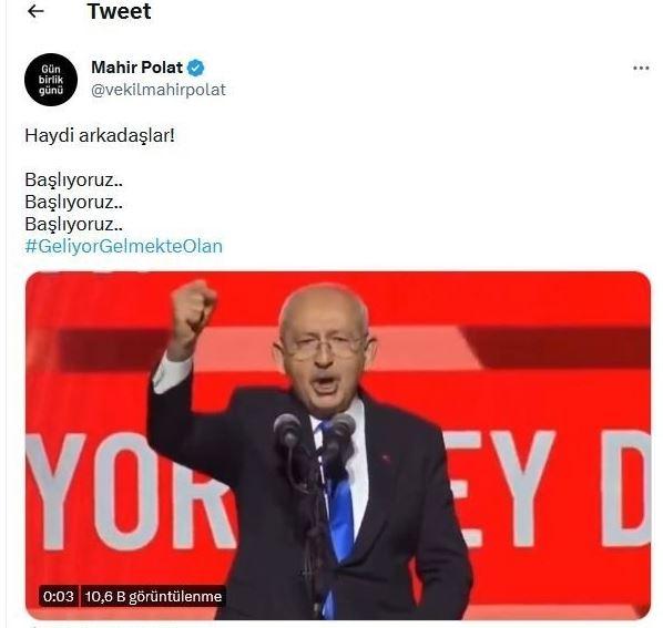 Yazılı açıklamanın akabinde CHP’li vekiller ve Parti Meclis Üyeleri Kılıçdaroğlu’na ilişkin görüntü paylaşarak ‘Başlıyoruz’ iletisi verdi.