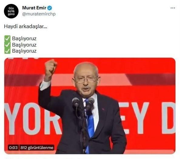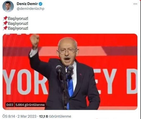 CHP Parti Meclisi Üyesi ve Kılıdçaroğlu’nun danışmanı Deniz Demir de Kılıçdaroğlu vurgusu ile “başlıyoruz” paylaşımında bulundu.