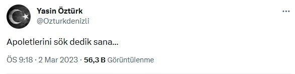 İYİ Parti Denizli Milletvekili Yasin Öztürk de “Apoletlerini sök dedik sana…” tabirlerini kullanarak Kılıçdaroğlu’na göndermede bulundu.