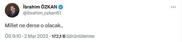 İBB DÜZGÜN Parti Küme Lider Vekili, İbrahim Özkan ise “Millet ne derse o olacak” paylaşımında bulundu.